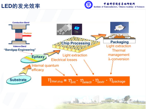 氮化鎵是直接帶隙的半導(dǎo)體材料,在光電應(yīng)用方面具有獨特優(yōu)勢?;诘壍腍B-LED對于通用照明來說,其核心問題是發(fā)光效率。其中外量子效率主要取決于三個層面的因素,內(nèi)量子效率、光提取效率,還有封裝方面的熒光轉(zhuǎn)化等效率,而且每個環(huán)節(jié)都息息相關(guān)。