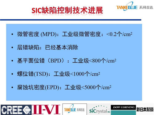 目前工業(yè)級碳化硅襯底微管密度小于0.2個/cm2,層錯缺陷基本消除,基平面位錯工業(yè)級襯底小于800個/cm2。經(jīng)預(yù)測,2019年碳化硅襯底市場約為3.5億美金,主要包括電力電子和微波領(lǐng)域,加上LED等其他領(lǐng)域應(yīng)用,大概為8億美金。