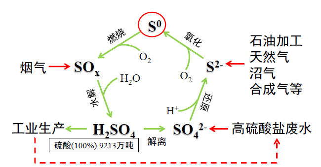 化學原料與制品、石化、醫(yī)藥、農(nóng)藥、染料化工、焦化、造紙等生產(chǎn)過程,硫及其硫的不同形式產(chǎn)物被廣泛應(yīng)用,目前我國每年消耗硫酸超過1億噸,硫酸鹽廢水排放體量巨大,工業(yè)生產(chǎn)過程每年產(chǎn)生大量的SO2,這些物質(zhì)最終以不同的形式硫進入生產(chǎn)廢水和固廢中。其中含硫廢水是最主要的硫污染源,這類工業(yè)廢水有機污染物濃度高、產(chǎn)生量大、污染物組分復雜,廢水中含有多種難降解化學物質(zhì)和毒性物質(zhì),廢水難生化降解。