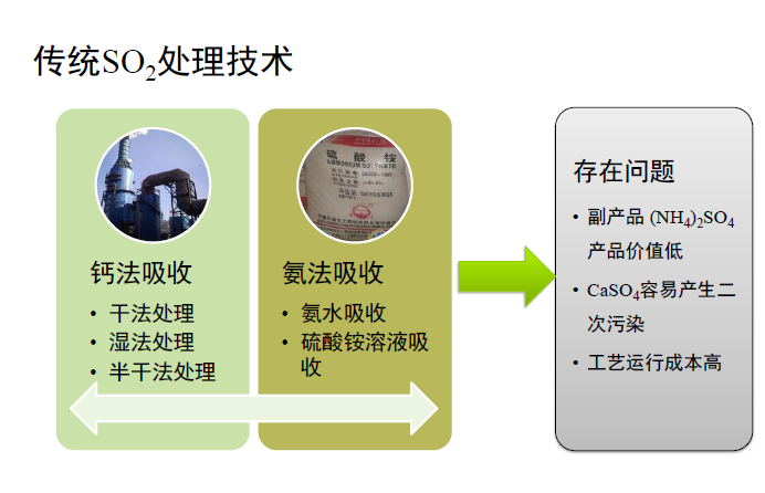 圖1-3 傳統(tǒng)SO2處理技術(shù)及其存在的問題
