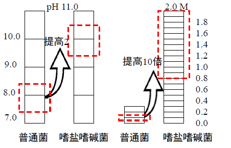 針對新型的嗜鹽嗜堿硫氧化系統(tǒng),我們自行篩選了嗜鹽嗜堿極端微生物,并敲除降低單質(zhì)硫產(chǎn)生的基因途徑,對其進行遺傳基因改造。該微生物可在較高的pH值和鹽度范圍內(nèi)生長,相對普通菌群的耐受能力大大提高(圖1-4)。