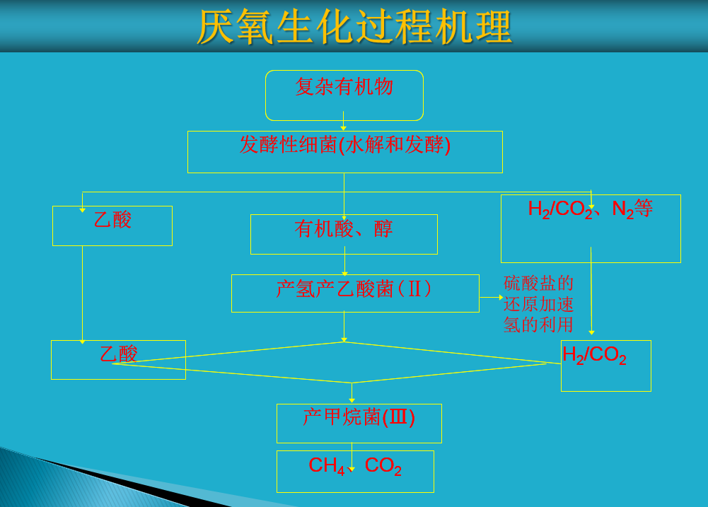硫酸鹽還原階段;含氮/硫有機廢水首先進行硫酸鹽還原反應(yīng),在硫酸鹽還原菌和產(chǎn)甲烷菌的作用下,完成硫酸鹽還原和大部分COD的去除;