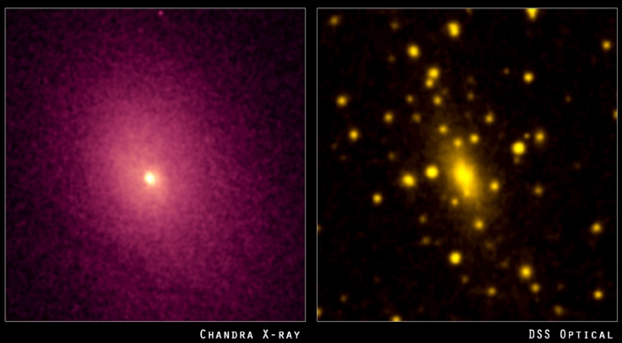 圖1 X射線天文學(xué):星系團(tuán)A2029(X射線vs 光學(xué))